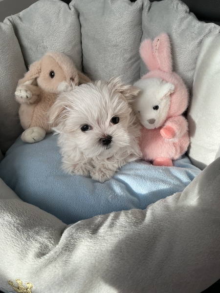 Mein Name ist Chmelik Eveline und bin seit 1998 mit Adi verheiratet. Da zu Beginn unsere Beziehung noch keine Rede von Kindern war, haben wir die Liebe zu der Rasse entdeckt, und uns zwei Rüden aus irgendeiner Zucht angeschafft. Ahnungslos und nur auf der Suche nach einem halbwegs geformten Hund, fand mein Mann einen Rüden, den wir Rambo tauften. Es war Liebe auf den ersten Blick! Ein kleines weißes Wollknäuel, temperamentvoll und anschmiegsam!Nachdem wir Beide leider viel beruflich unterwegs waren, sorgten wir dafür, dass unser Rambo einen Spielgesellen bekam. Rocky aus selbigen Elternhunden, kam in unsere Familie.